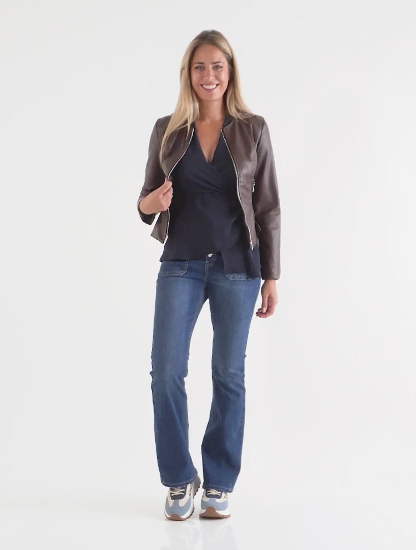 Blouse unie style portefeuille à col cache-coeur - Marine