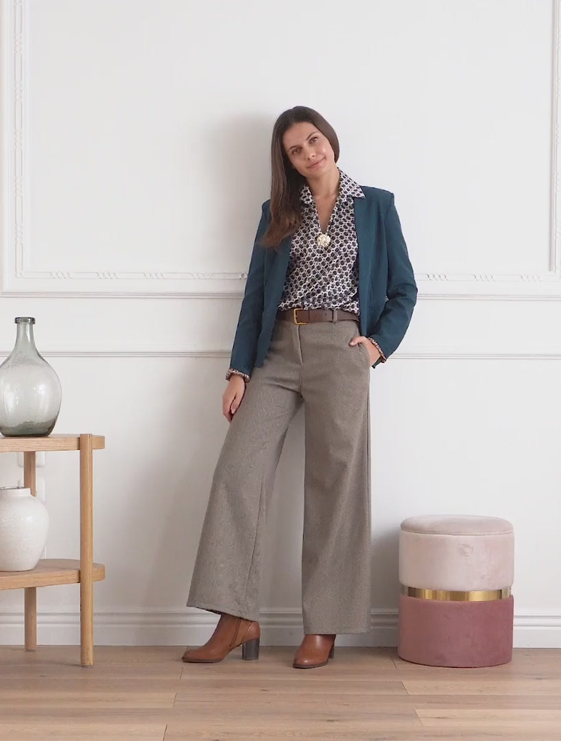 Blouse satinée imprimé 70's - Bleu canard