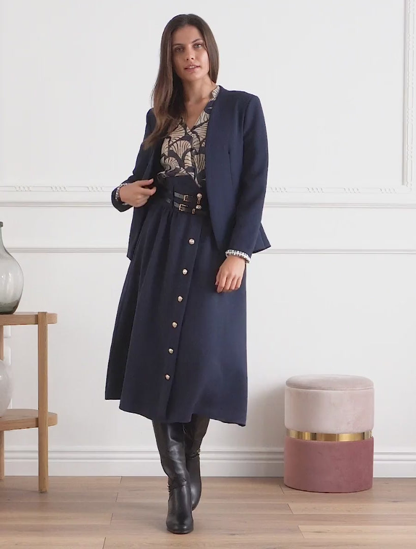 Top irisé en voile imprimé fantaisie - Marine