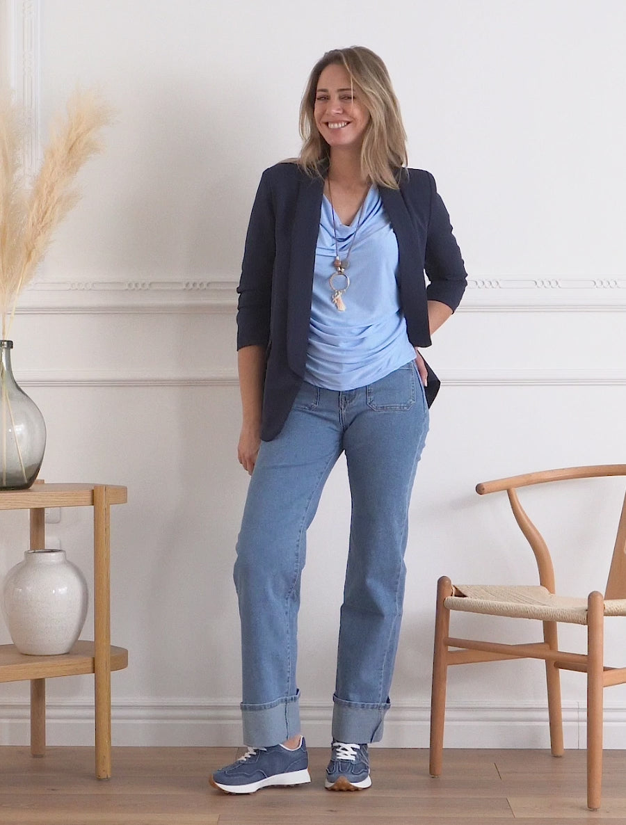 Top fluide côtés plissés - Bleu ciel