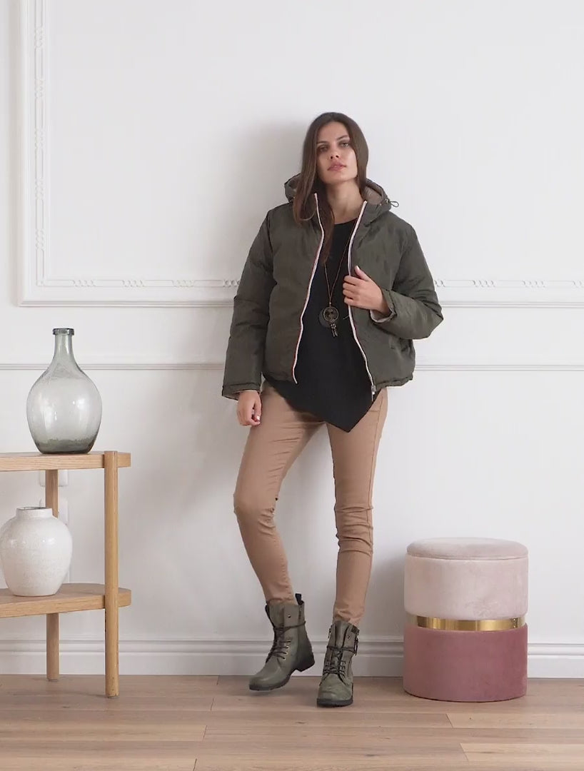 Bottines bi-matière à contrefort imprimé croco - Kaki