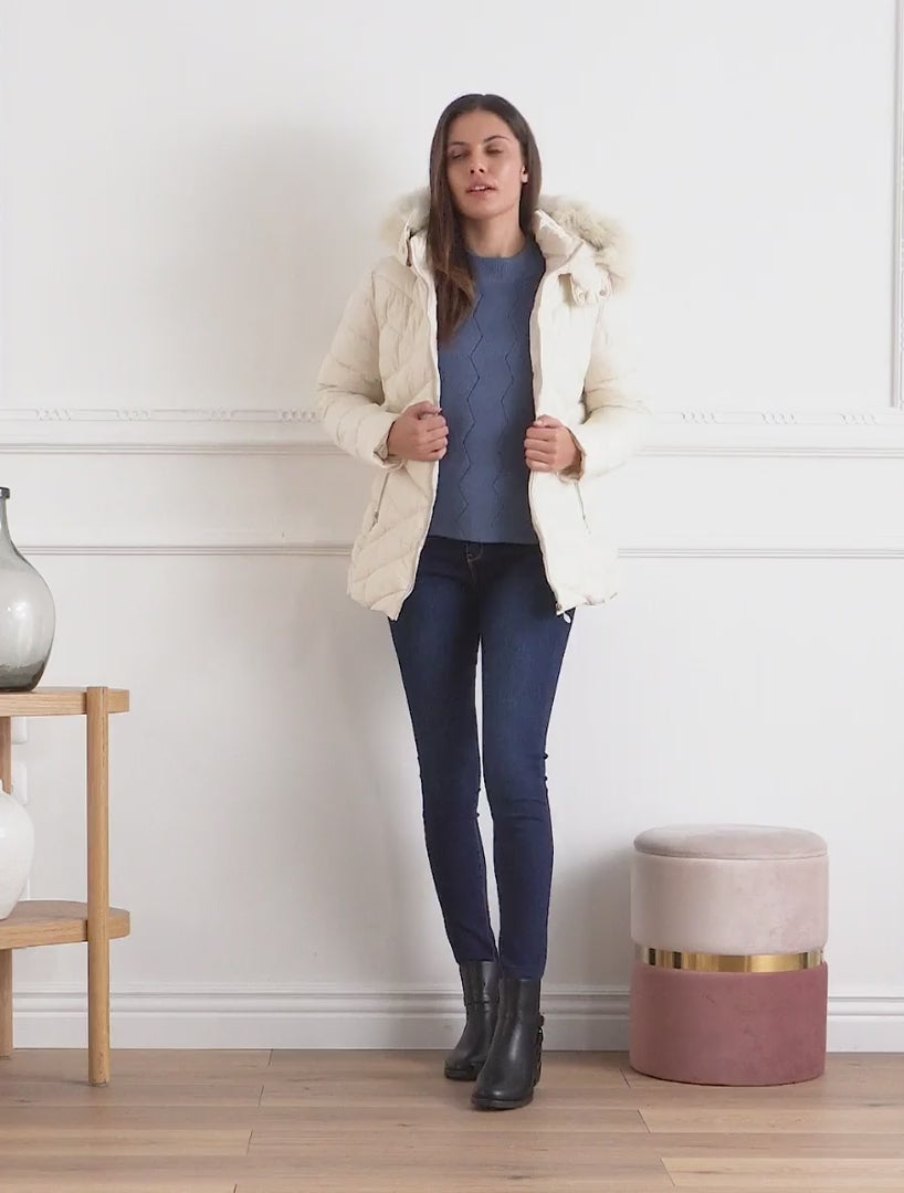 Doudoune matelassée à capuche fourrure synthétique - Crème